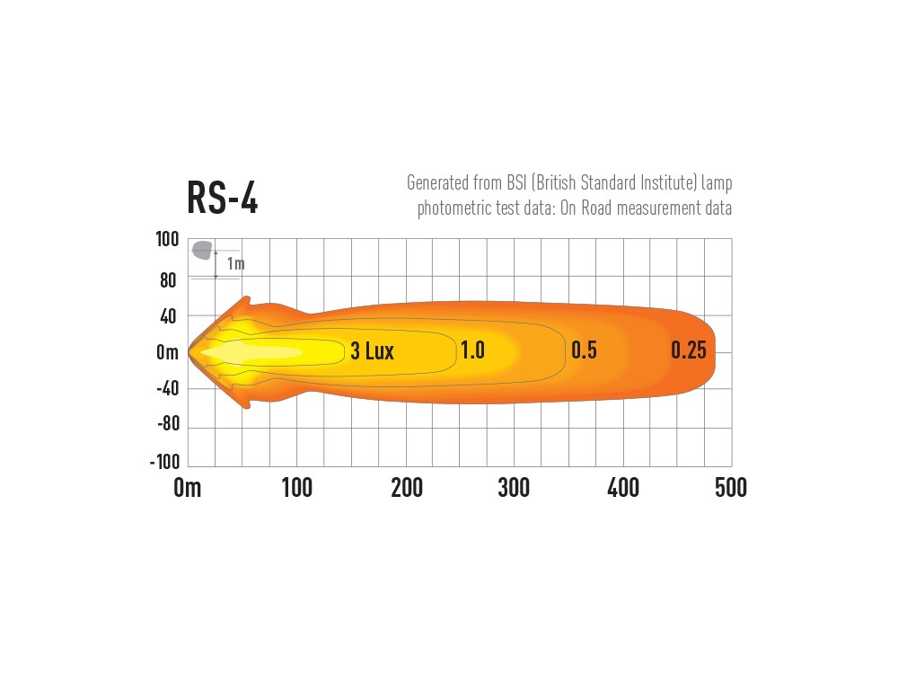 The RS-4 is a compact, low profile, high performance lamp which delivers suprior levels of light (1 lux @ 243m) for faster, safer, and more enjoyable night-time driving. Tuned to have a combination spot/flood beam pattern, the RS4 provides good distance illumination with significantly more light distributed at the sides of the road/track. The RS range also includes Daytime Running Lights (DRL) which dim to become position/park lights when the vehicles lights are activated (*Auto Dimming). Functions are fully ECE and SAE approved so can be connected to the vehicle lighting system for on-road use.