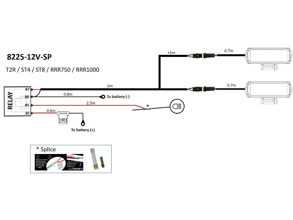 Lazer harness kits feature a 12V relay, 25A fuse, and battery terminal at one end. We use the best corrosion proof splice systems currently on the market, comprising copper crimp barrels and separate, heat-shrinkable transparent sealing sleeve, ensuring that the ‘high beam’ connection remains fully protected.