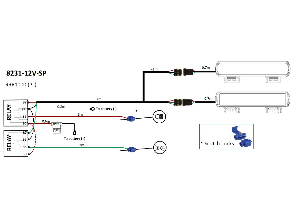 Lazer harness kits feature a 12V relay, 25A fuse, and battery terminal at one end. We use a pair of Scotch Lock connectors to facilitate the integration into your vehicle’s electrcial system, while ensuring that the connection remains fully protected.